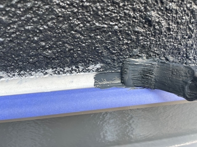 土台水切り上のコーキングの塗装の様子です。本日検査も問題なく終わり明日は足場解体です。足場解体後にベランダのウレアックスも予定しております。またアップします。