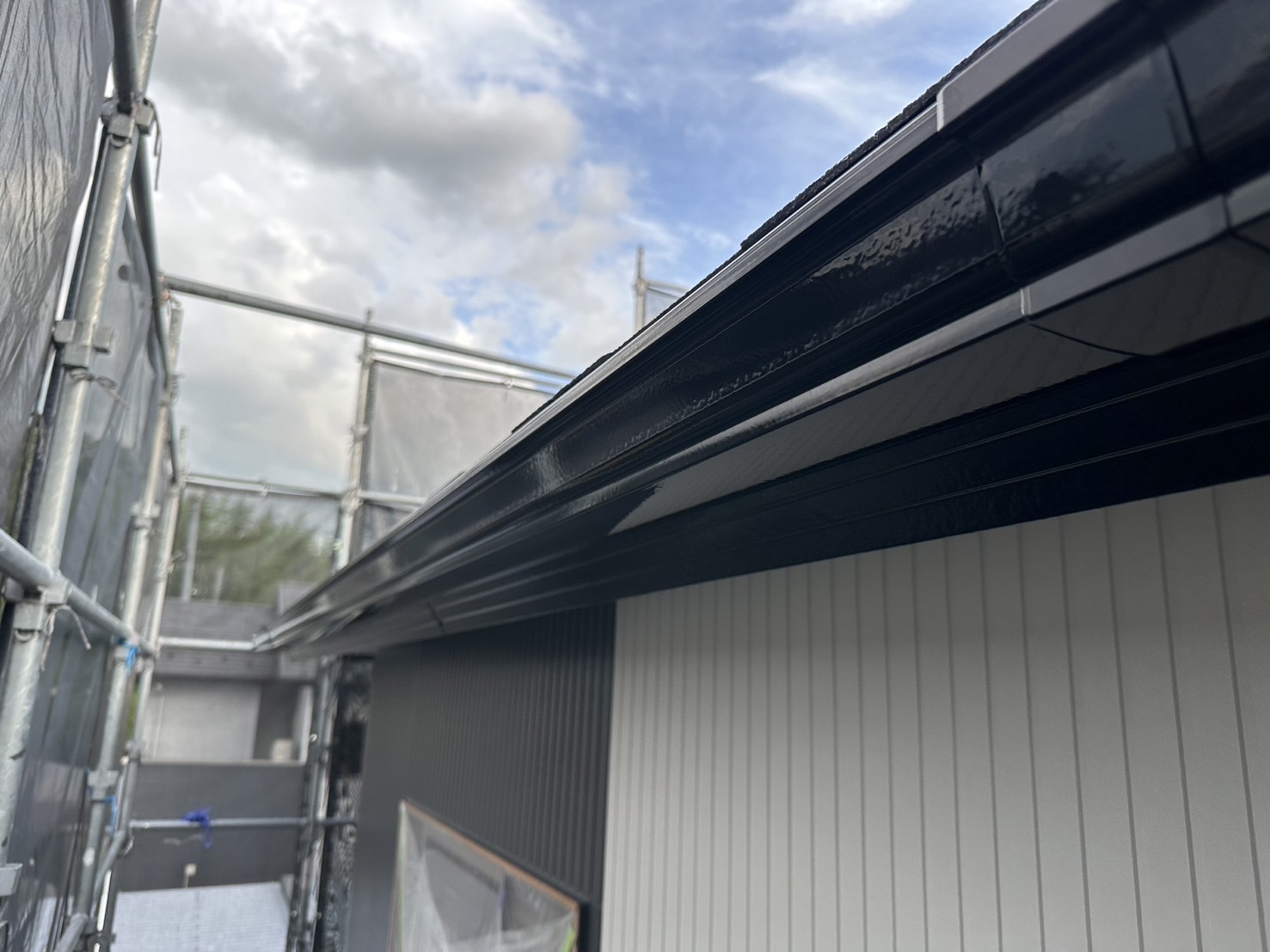 外壁の上塗りを完了し破風、鼻隠し、軒樋の塗装進めました。明日は下屋根の塗装と竪樋の塗装を進める予定です。またアップします。