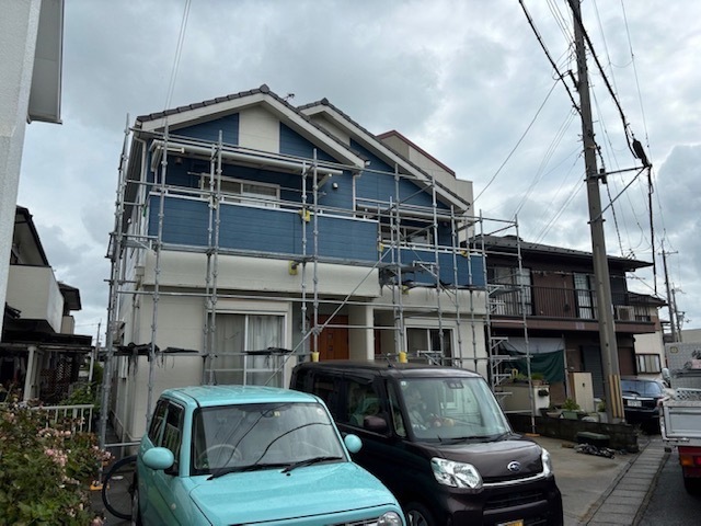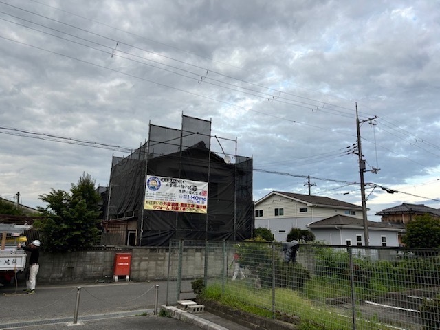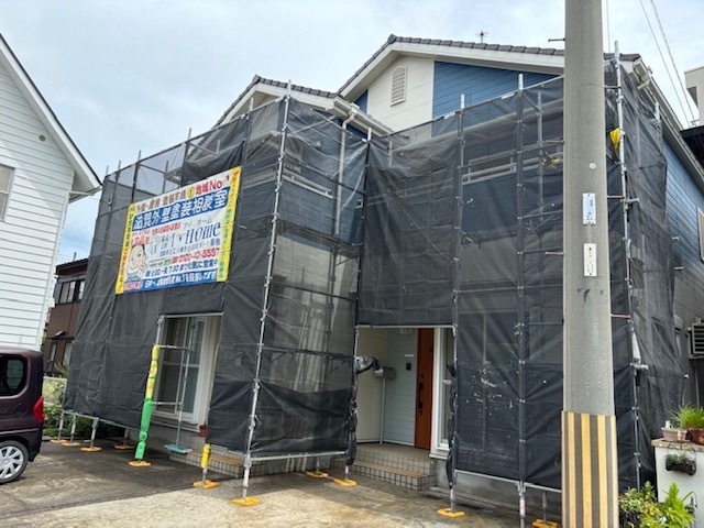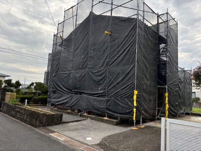 足場架設完了しました。先日は屋根の工事をさせて頂き追加で塗装工事も頂きました。またアップします。