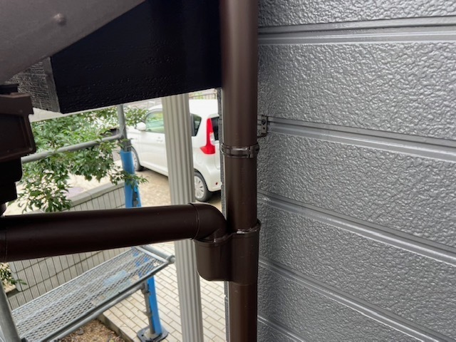 雨樋の工事を明日に引き続き行いました。本日完了です。次は足場解体です。またアップします。