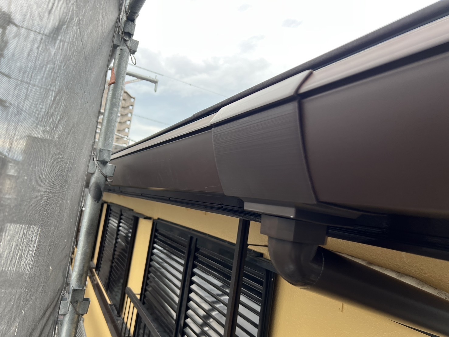 雨樋の交換実施しました。明日は残りの板金工事を終わらせて防水班にバトンタッチです。その後はいよいよ足場解体です。またアップします。