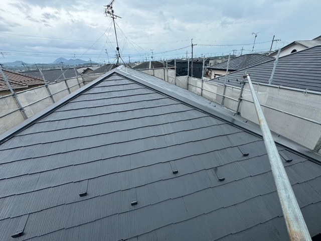 細かな部分まで丁寧に仕上げて行きます。塗装の検査も実施させて頂きました。明日は作業お休みで明後日から手摺復旧や雨樋交換、網戸設置など実施します。来週には足場解体できそうです。またアップします。