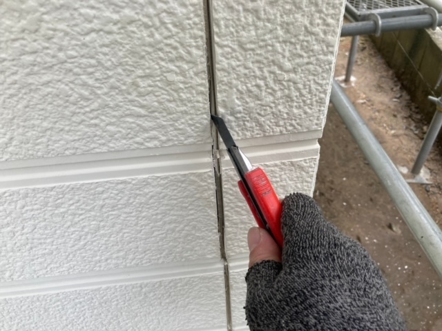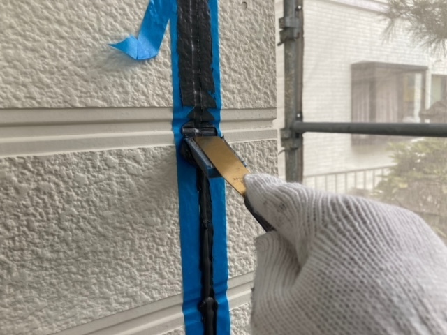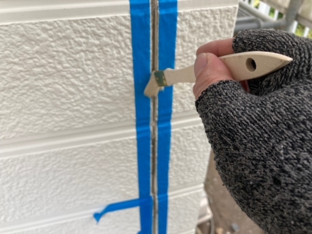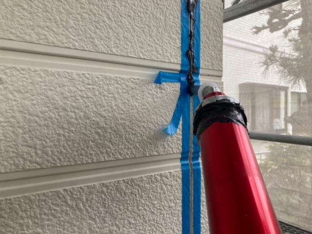 コーキング工事の様子です。大きなお家ですが本日完了しました。明日はコーキングの影響のないベランダや下屋上や土間など養生予定です。またアップします。
