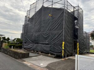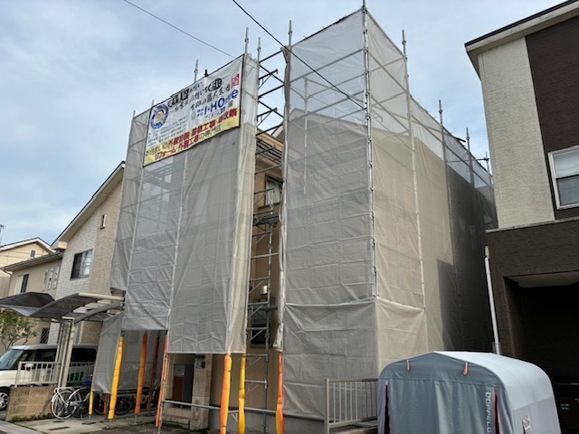 足場架設完了しました。明日は高圧洗浄を実施します。いよいよ本格的な塗装工事スタートです。またアップします。