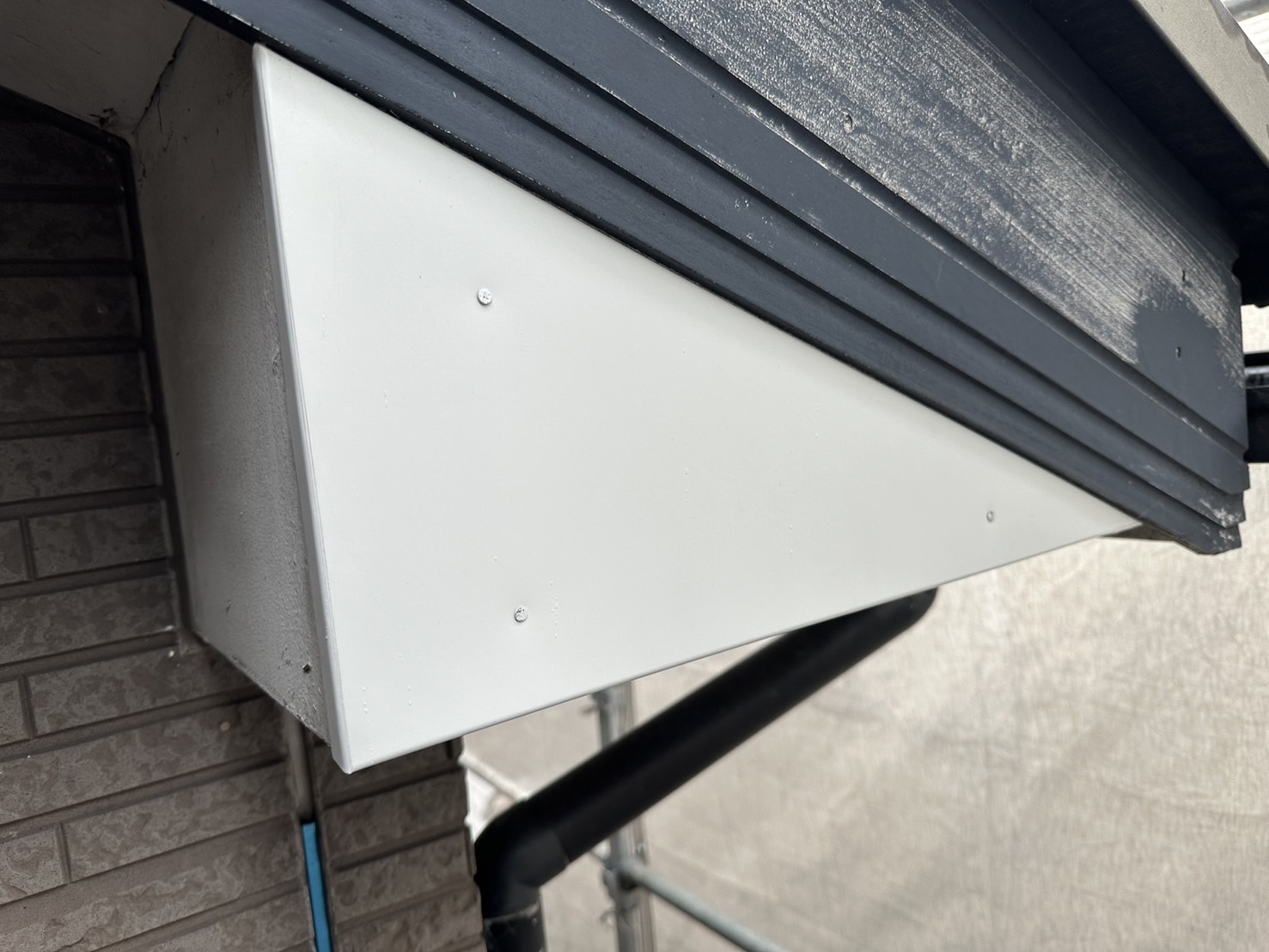 今日はコーキング工事進めました。4名で作業進めたので1日で完了です。明日から乾燥期間に入っていきます。破風のケイカル部の三角部分の腐食を板金でカバーも実施済です。棟板金の釘浮きなどもパッキンビスで補修しました。またアップします。