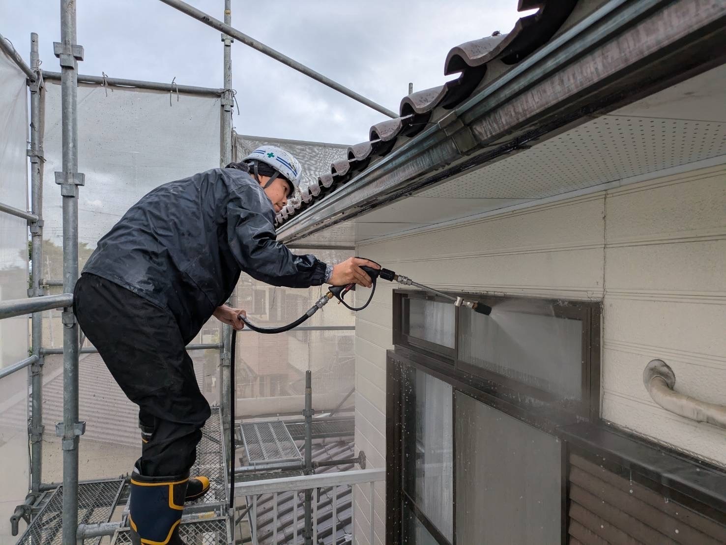高圧洗浄実施しました。大きなお家ですが外壁のみなので半日で順調に完了しました。来週月曜日からコーキング工事です。またアップします。