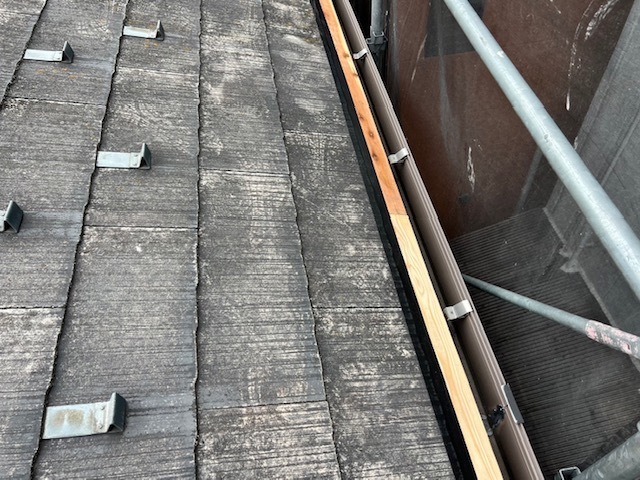 今回は屋根はカバー工法なので今日は軒先の高さ調整を行いました。ベランダの手摺も一旦外す工事を行いました。明日は雨ですが雨養生しているベランダ内部の壁面に板金を貼って行きます。またアップします。