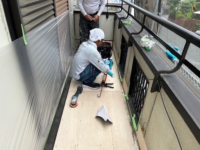 ベランダ工事スタートです。雨は降らなかったですが、念のために雨養生しながら進めました。FRPまで進めて明日続きします。またアップします。