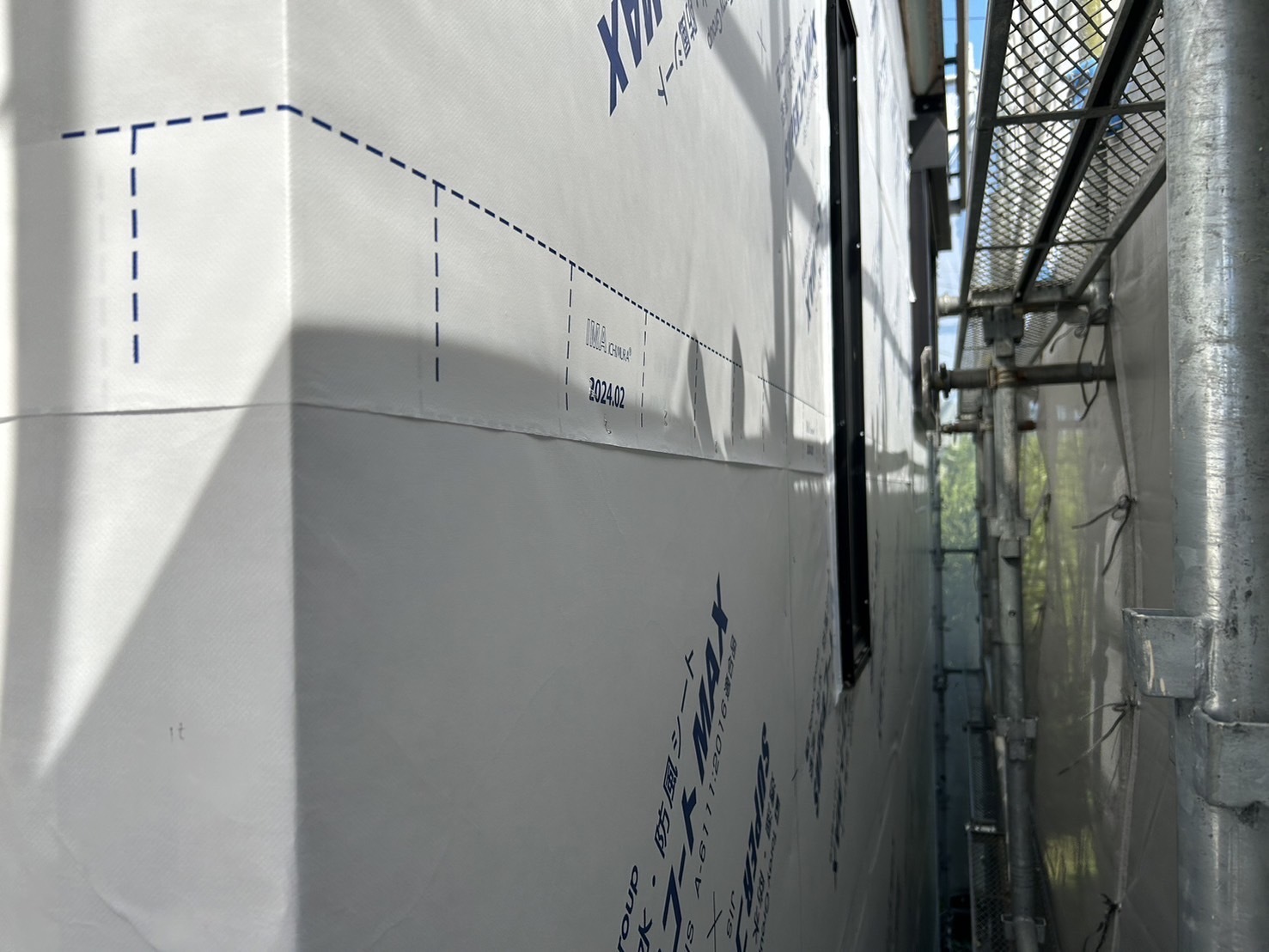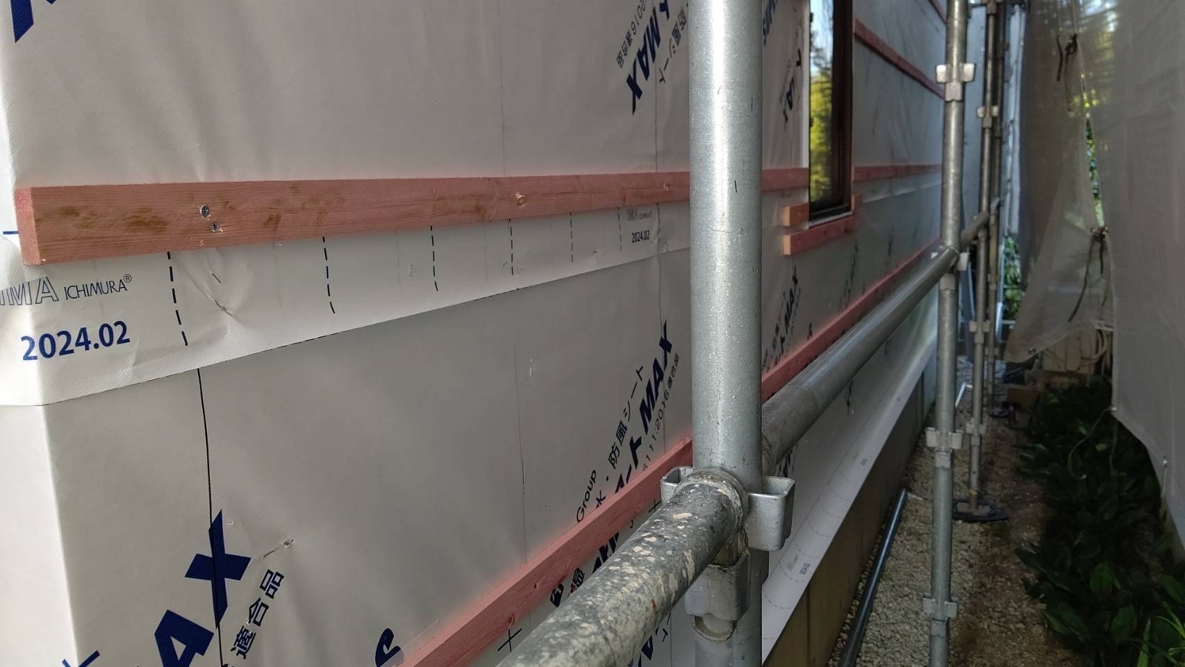 金属サイディング工事の現場です。今日は透湿防水シートと胴縁工事しました。来週に部材搬入して電気器具の脱着なども行います。またアップします。