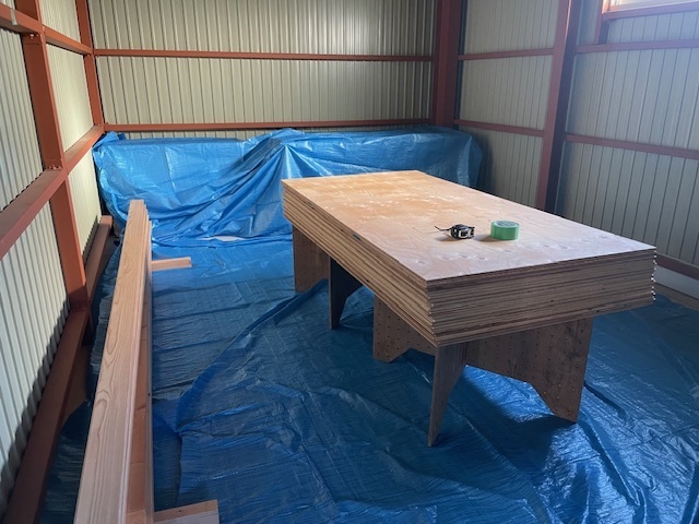 倉庫の内部の棚板設置工事の様子です。今日は全ての荷物を外に出して養生作業を行いました。大工さんが頑張って搬出してくれました。月曜日から本格的に工事スタートです。またアップします。