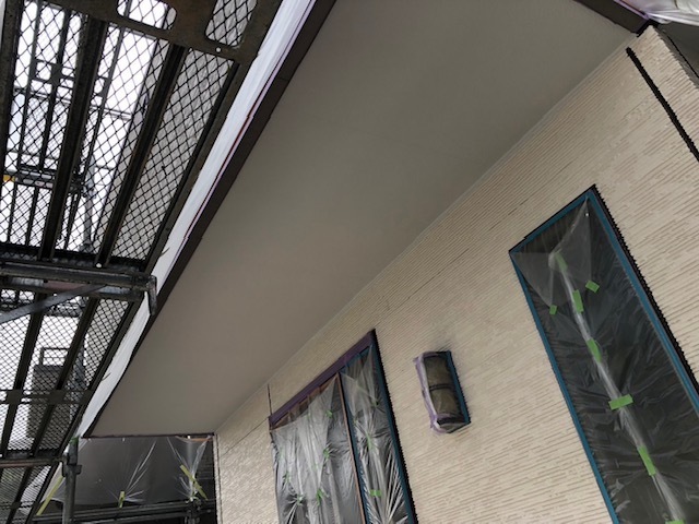軒天の完了写真です。外壁のシーラーも進めております。軒樋も少し塗装始めて来週から本格的に外壁に着色となります。またアップします。