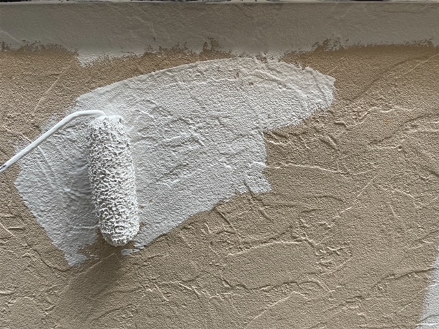 外壁中塗りの様子です。人気色のNシリーズの白系です。付帯部が黒の予定なので綺麗な仕上がりがもう想像できます^^またアップします。