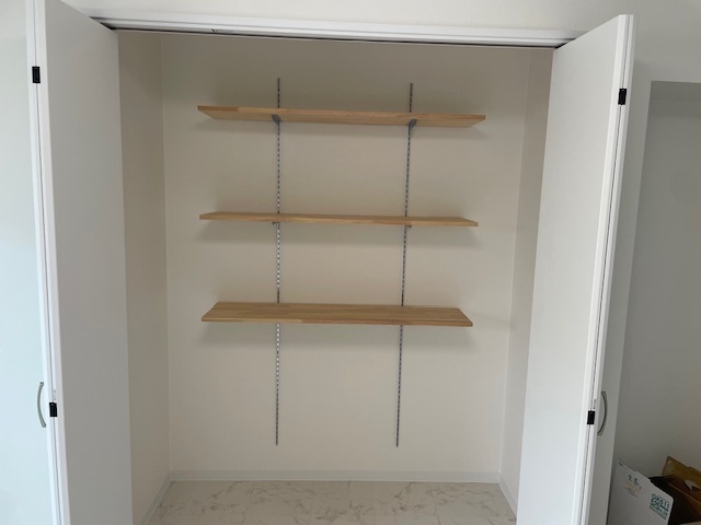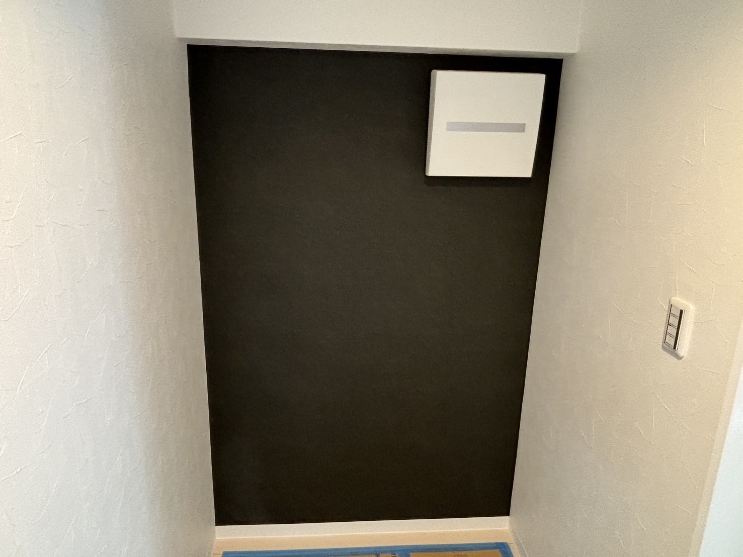 今日から建具工事です。クローゼット内部も仕上がりました。設備関連は今日を大掃除も行い一気に作業が進みました。玄関横のポイント色のクロスも素敵です。またアップします。