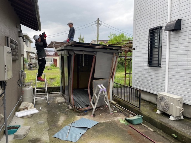 解体工事の様子です。追加で荷物が結構ありましたが何とか形にはなりました。明日の朝から仕上げを行います。またアップします。