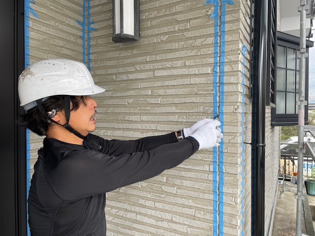 シーリング工事の様子です。今回はクリア塗装なので仕上げ打ちになります。またアップします。