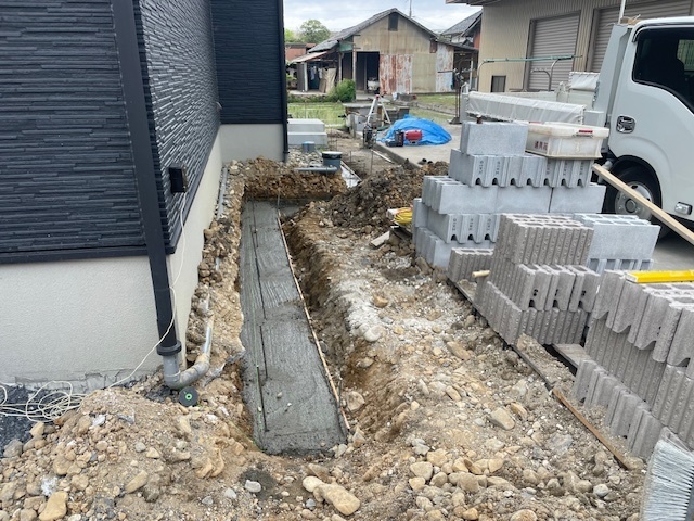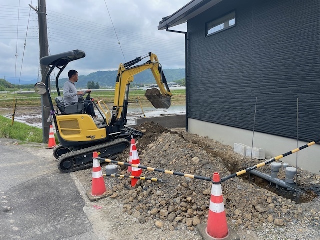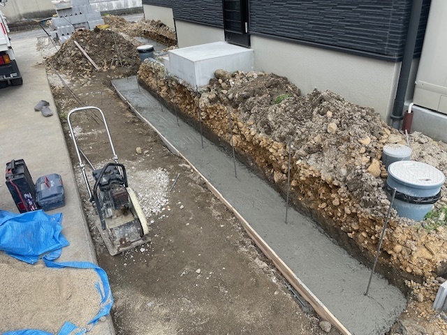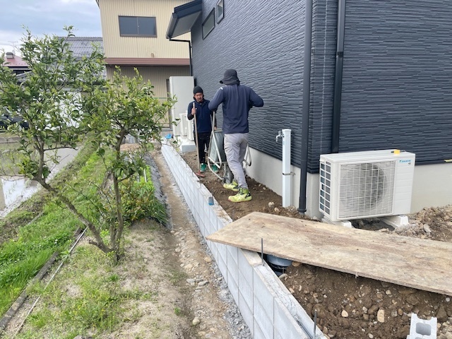 今日も外構工事進めております。順調に進んでおります。天気も何とかもちそうなので頑張って進めて行きます。