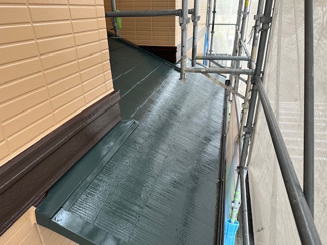 玄関上の下屋根の仕上げと雨戸の塗装進めていきました。付帯部が多いので細かな作業が続きますが丁寧に進めております。またアップします。