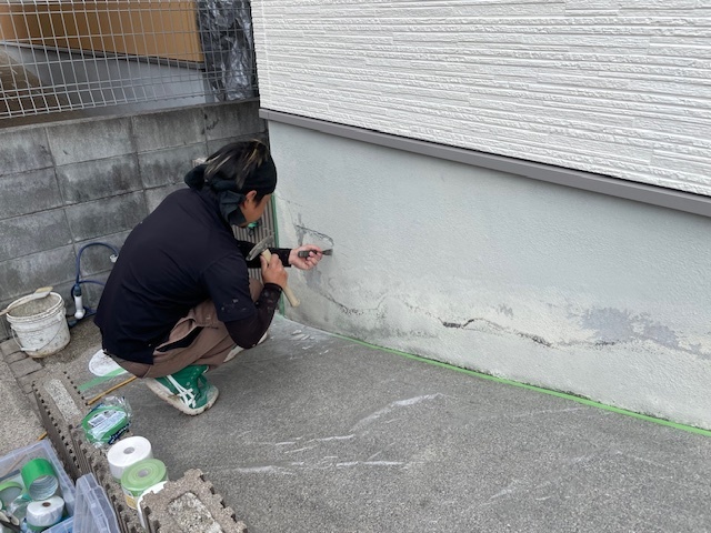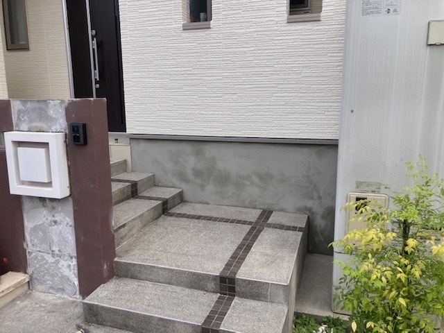 今日から左官工事スタートしております。月曜日も引き続き工事予定です。タイルも今回新しく交換しその後に塀の仕上げ塗装していきます。またアップします。