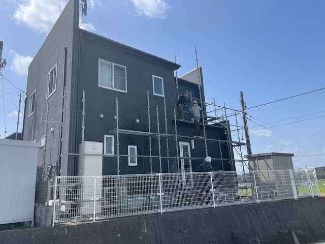 足場架設工事の様子です。明日からはサイディングの張り替え工事になります。その後コーキング行い高圧洗浄という流れで進めて行きます。またアップします。
