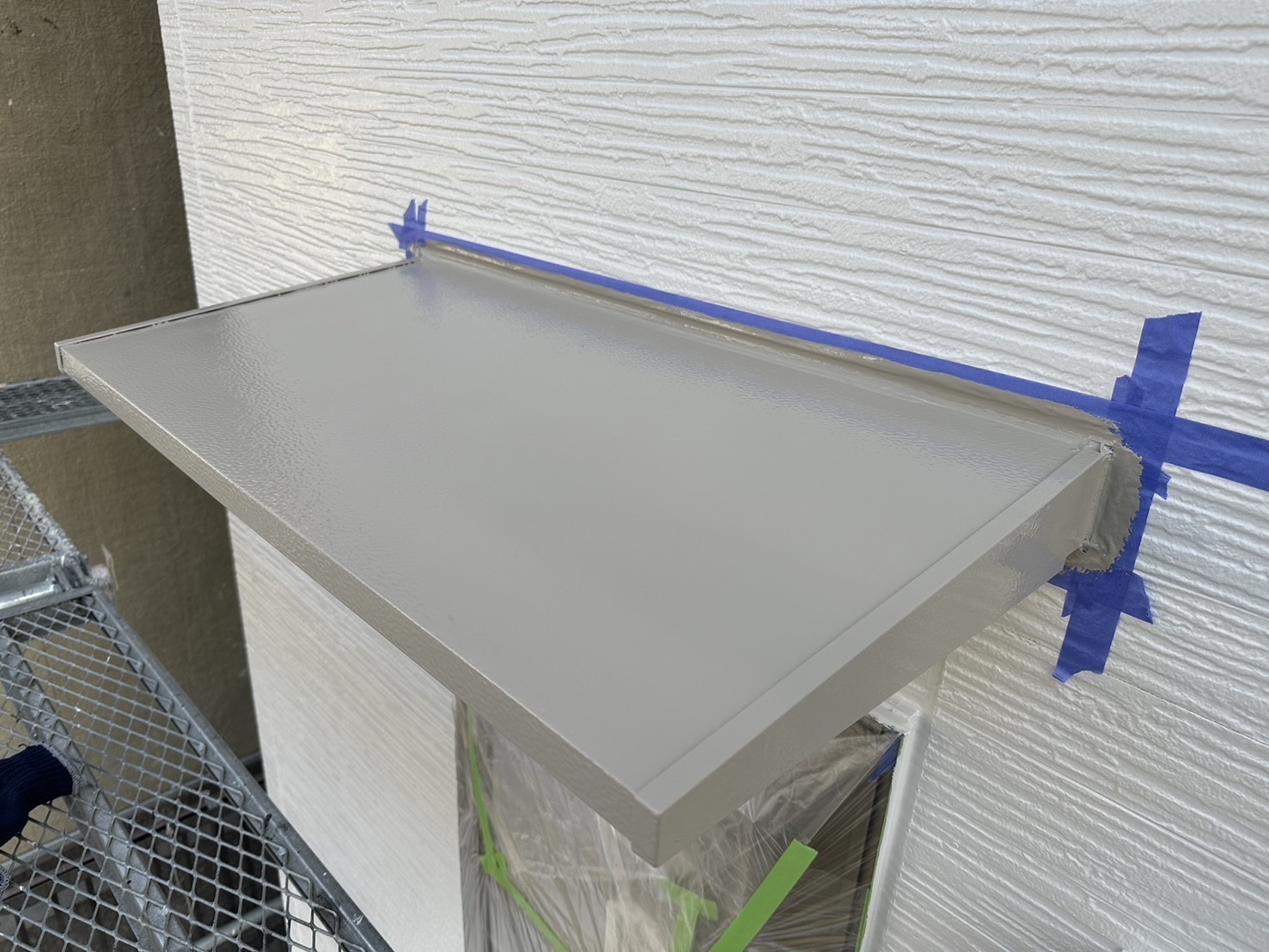 鉄部関連のシャッターボックス、小庇、水切りも塗装完了です。月曜日はいよいよ検査です。またアップします。