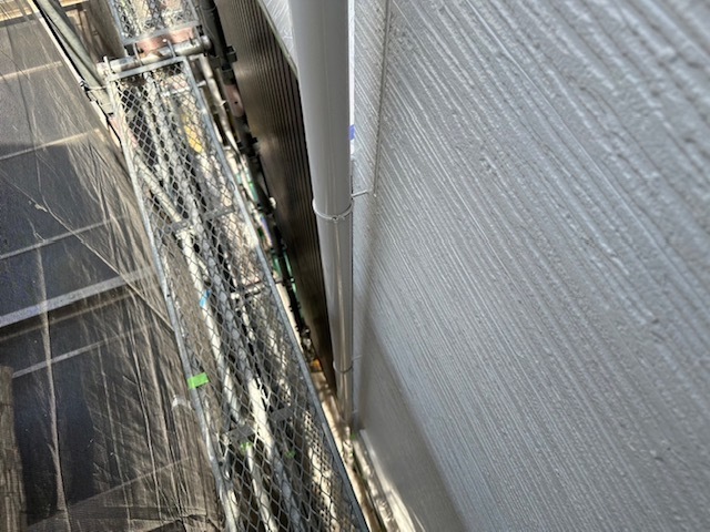 本格的に付帯部の塗装を進めております。軒樋も終わり今日は竪樋の塗装です。明日にはだいぶ形になってきて月曜日に検査予定です。またアップします。