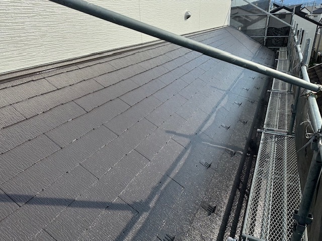 今日は屋根の仕上げと外壁メイン色の仕上げを行いました。もう折り返し地点も過ぎてきました。最後まで丁寧に進めて行きます。またアップします。