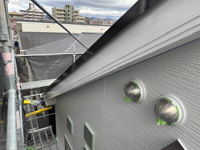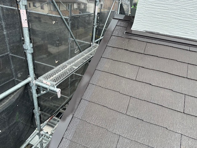 雨が止むまで現場待機して進められるところを考えながら進めて行きました。明日は屋根の中塗りと上塗りを進めて行く予定です。屋根の板金などの細かな箇所は仕上がっているのでスムーズに進むと思います。またアップします。
