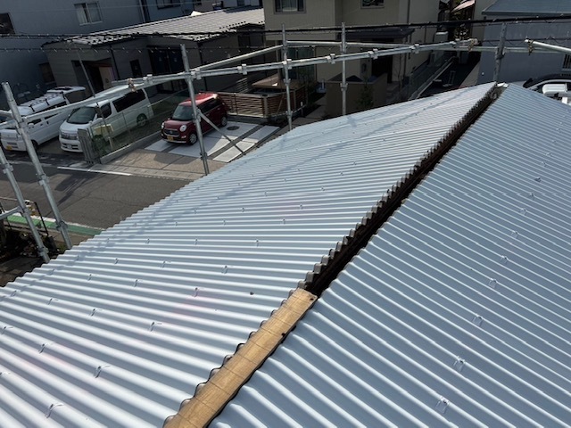 屋根のカバー工法スタートです。4名で作業進めました。明日は雨樋なども交換していき役物周りも加工していきます。またアップします。