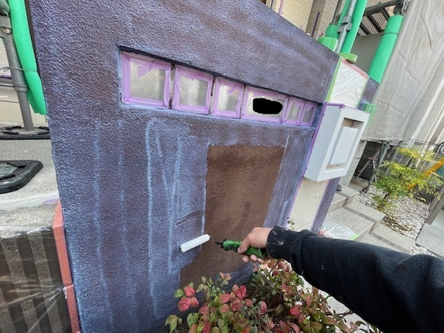 笠木の塗装と塀の塗装をしました。塀はまた左官で補修して最後に仕上げ塗装になります。コーキングも本日完了しました。またアップします。