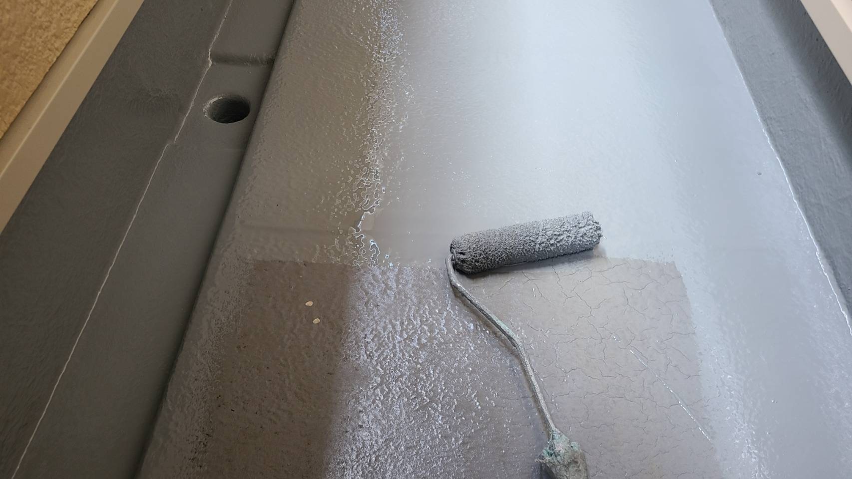 ベランダの床のTOPコートを施工しました。ウレアックスHGです。他社でもウレアックスHGを採用してるところが多く防水機能もついたTOPコートで優れものの商品です。またアップします。
