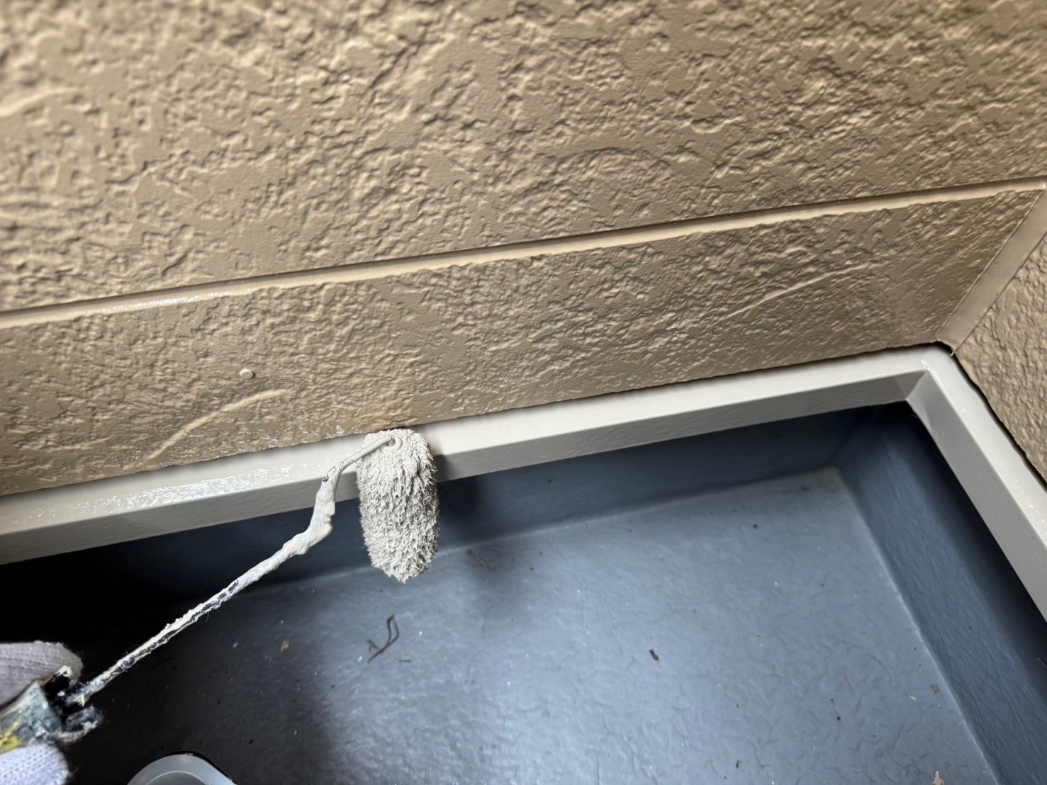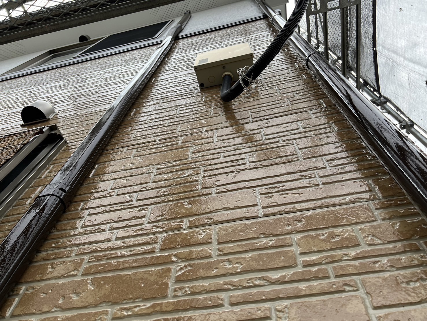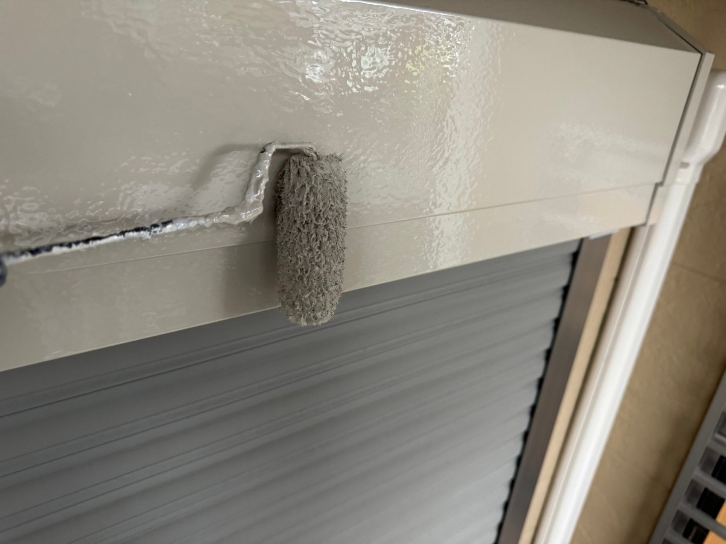 シャッターボックスや水切りの塗装を進めました。掃除やタッチアップもしました。朝から雨が降ったために屋根の塗装は出来ませんでした。明日は屋根の塗装をします。またアップします。