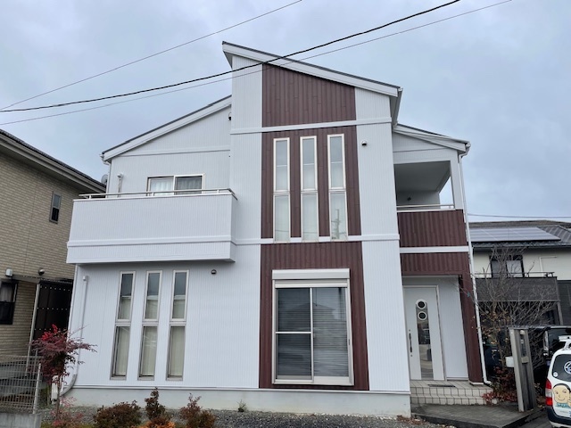 Mさま邸完成しました。台風の飛来物による雨漏りも修繕し塗装もさせていただきました。内部のクロスやボード交換を後日進めます。またアップします。