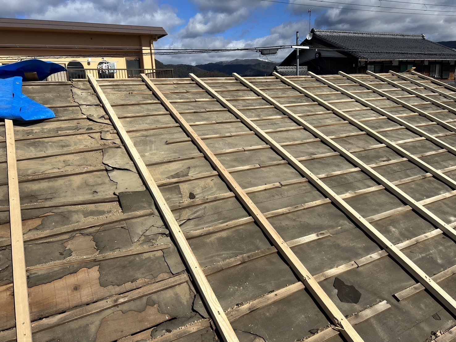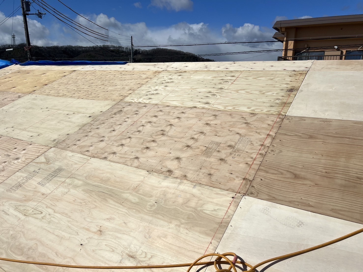 垂木で空気層を作り断熱効果を上げます。今回は寒冷地仕様のルーフィングで施工していきます。またアップします。