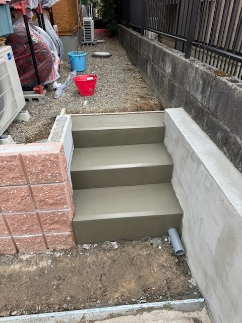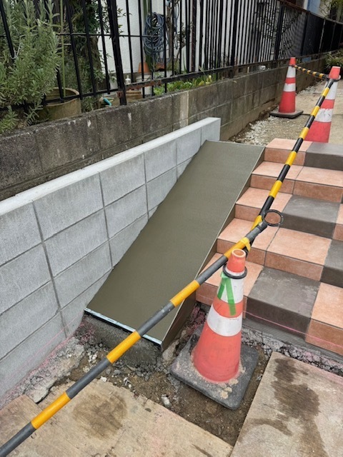 スロープと階段の施工行いました。左官職人のきれいな仕事です。来週月曜日に土間の段取りしていよいよ土間打ちです。土間が終われば工事完了です。またアップします。