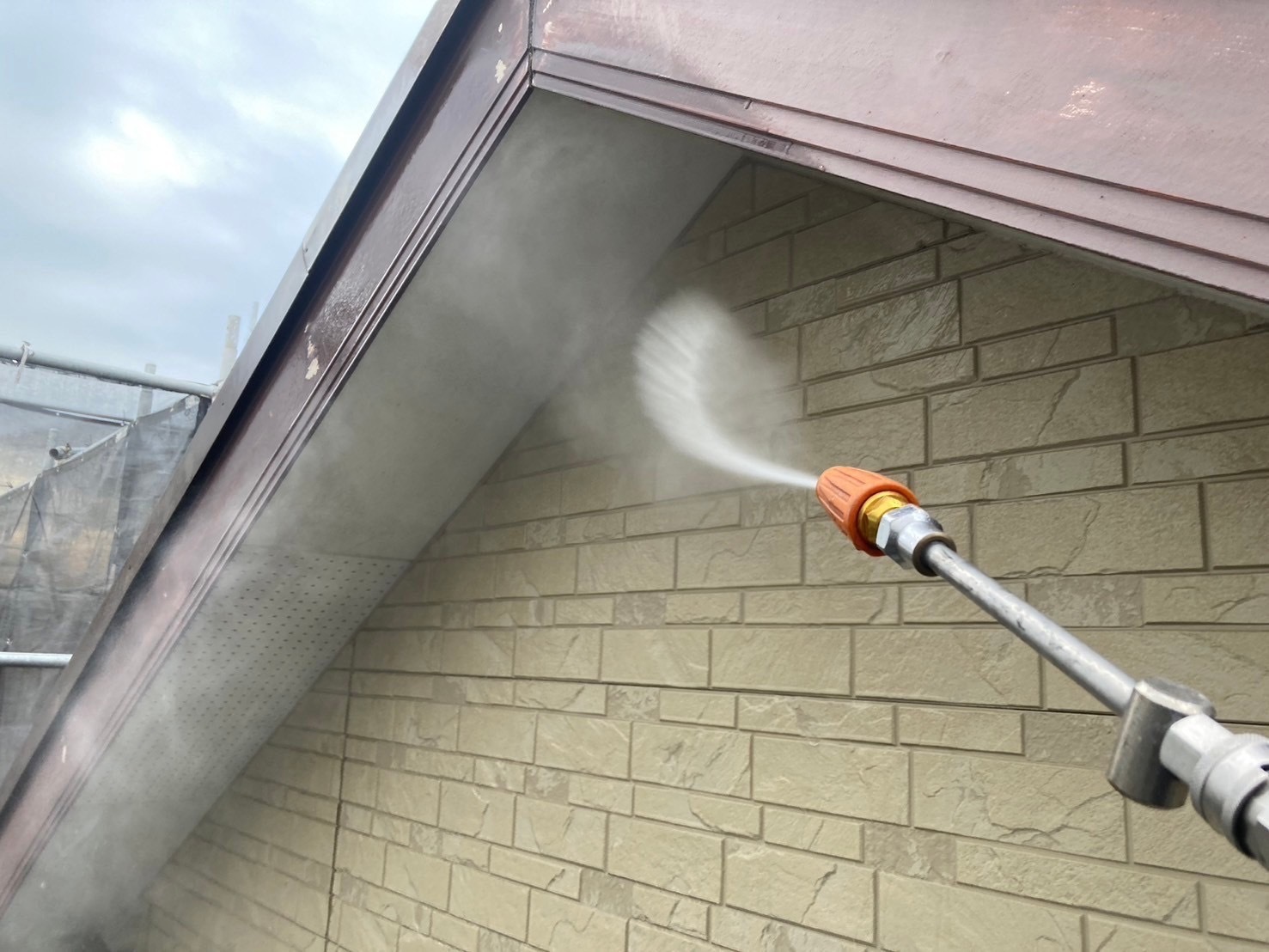 高圧洗浄を実施しました。雨が降る前に完了しました。明日からコーキング職人にシール工事に入ってもらいます。またアップします。