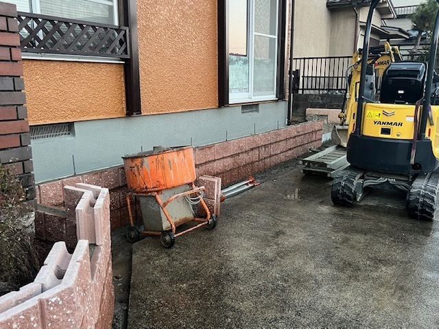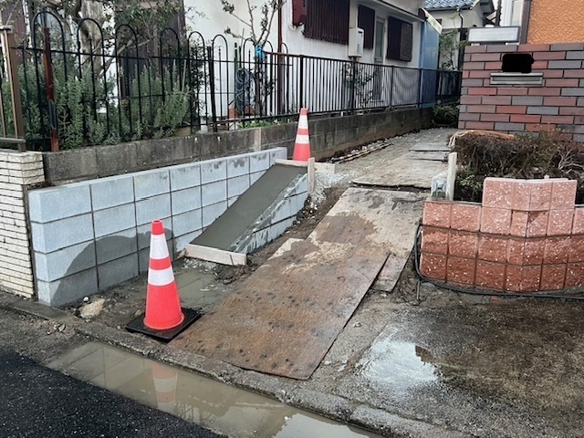 スロープやブロックなど順調に工事進んでおります。明日、明後日は材料の入荷待ちで作業中止となります。また木曜日から頑張って進めていきます。