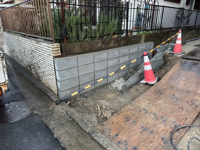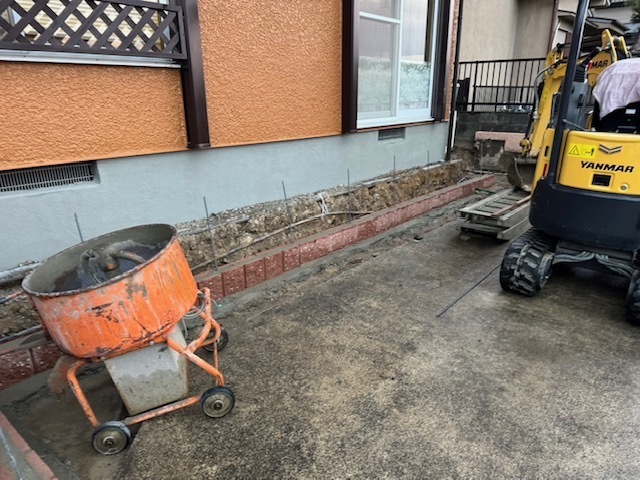 Mさま邸の外構工事の様子です。順調に進んでおります。化粧ブロックも積み始めて段々形になっていきます。またアップします。