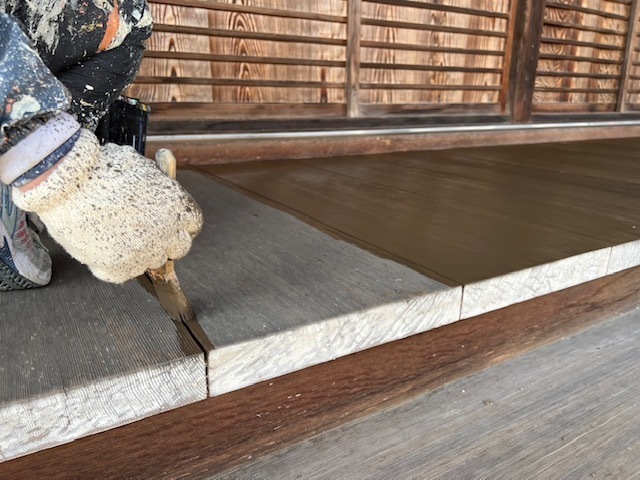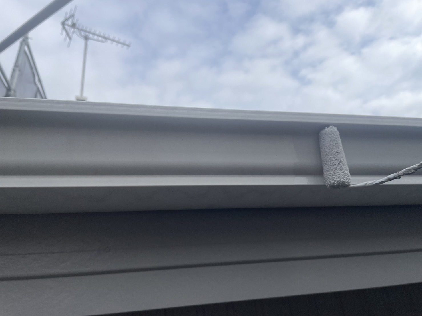 付帯部の塗装を進めております。綺麗な白で仕上がってます。外壁ポイントの茶系は全て仕上がってから最後にライン出しながら仕上げて行きます。またアップします。