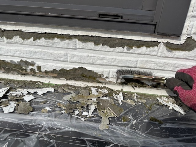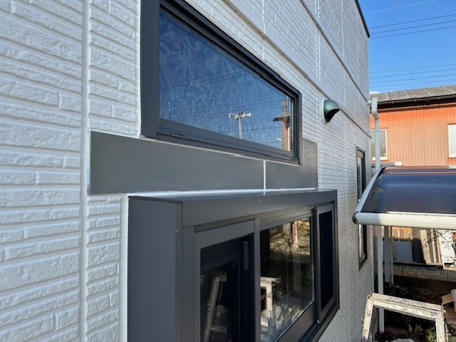サイディングが凍害で腐食していたので綺麗にケレンしシーラーで表面固めて水分の吸い込みを防ぎその上から板金を貼りました。コーキングでシールし後日塗装して行きます。このような箇所をほっておくとドンドン広がるので早めの対応が必須です。またアップします。
