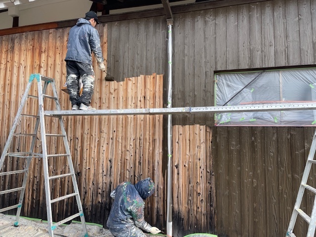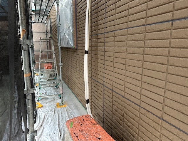今日から養生スタートです。100mくらいの距離に2軒塗装現場が同時に進めております。明日も引き続き養生していきます。またアップします。