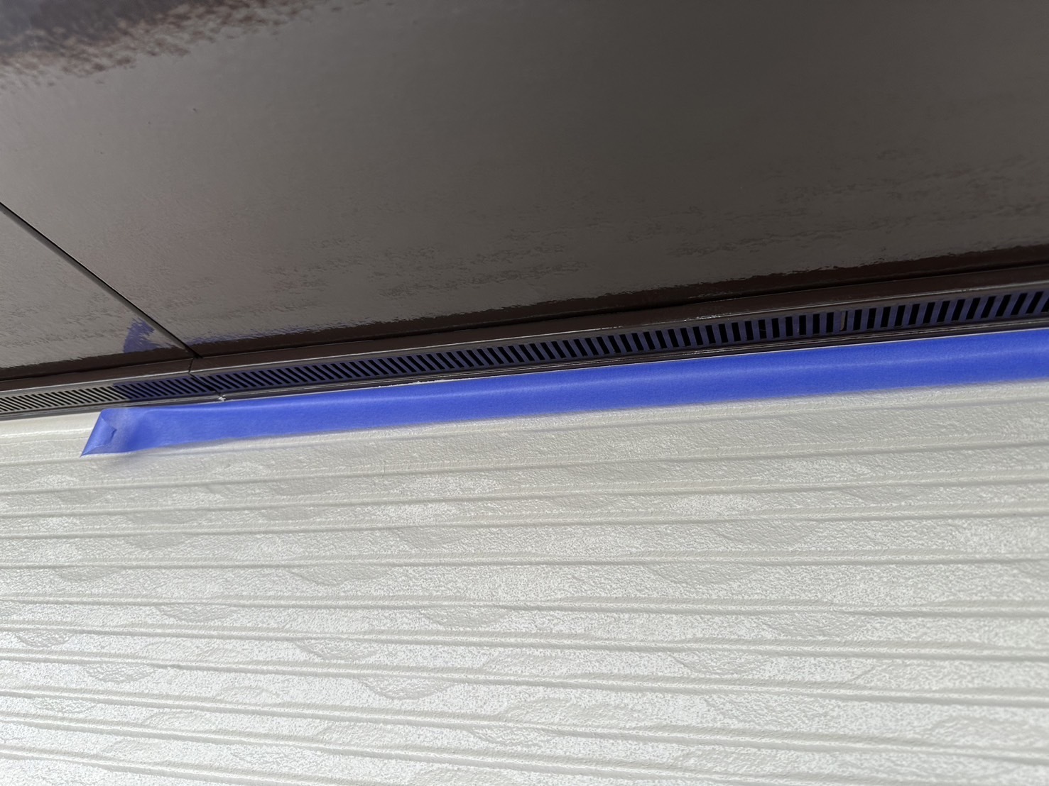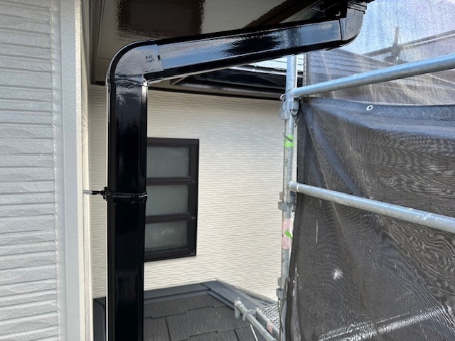 霧雨の間は軒と外壁の取合いのライン出しなど行ったり現場の空缶整理など行いました。天気良くなってから竪樋の塗装と2階の養生バラシ行いました。またアップします。
