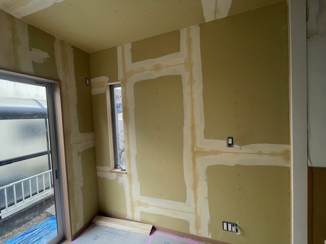 クロスのパテと外壁のコーキング完了です。外工事は留守でも進められますが中の工事はお客様の都合にあわせて在宅時に段取りよく進めます。明日でクロス完成予定です。またアップします。