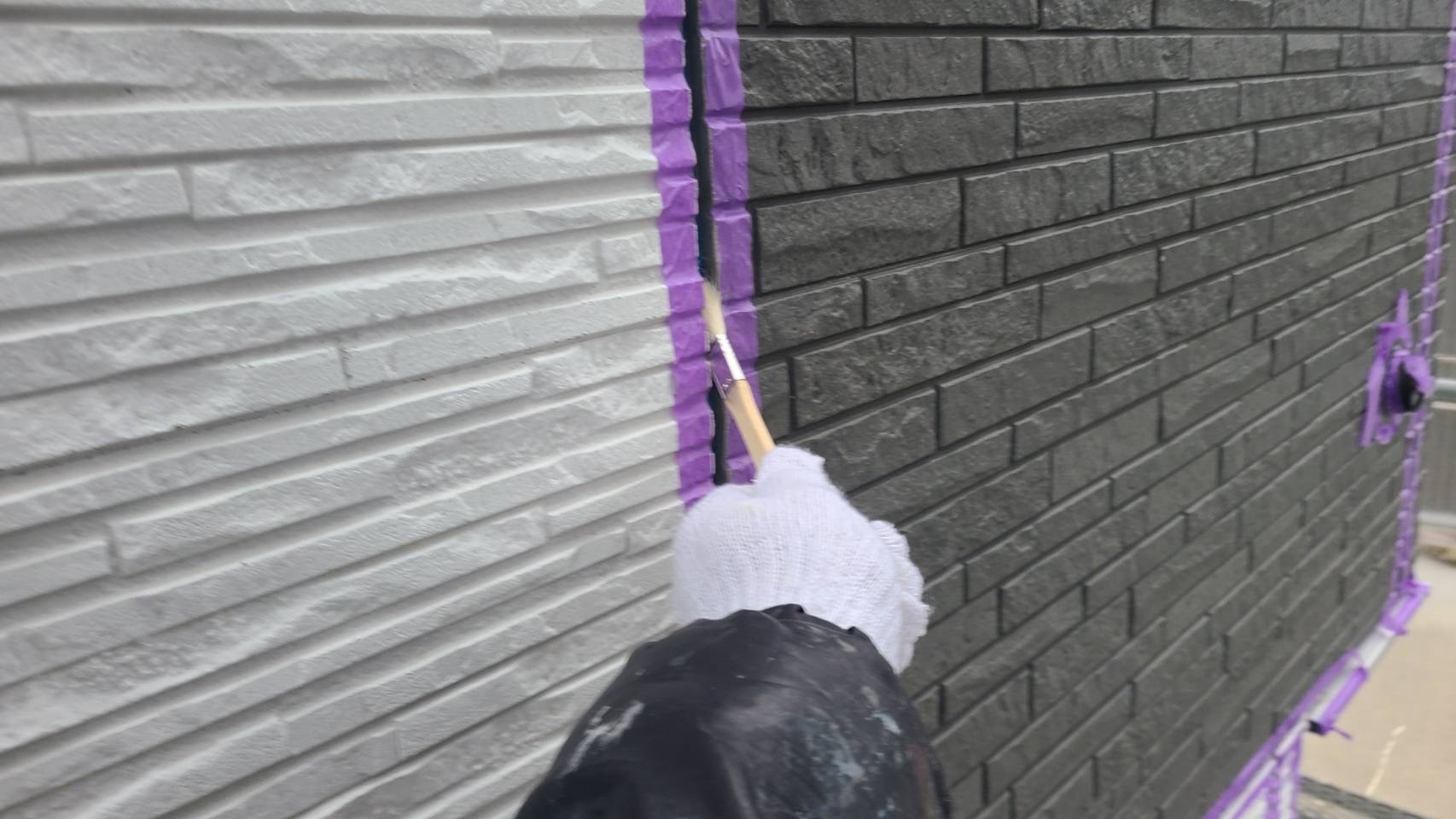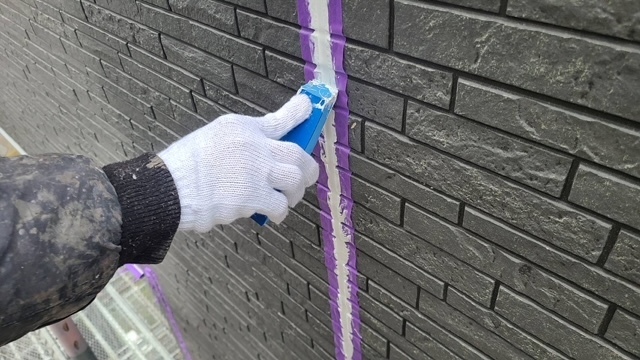 シーリング工事の様子です。オートンイクシードでシールしております。少し工事残りましたがあと少しでコーキング工事完了です。外壁を白色で塗装しますのでコーキングも白で打ってます。またアップします。