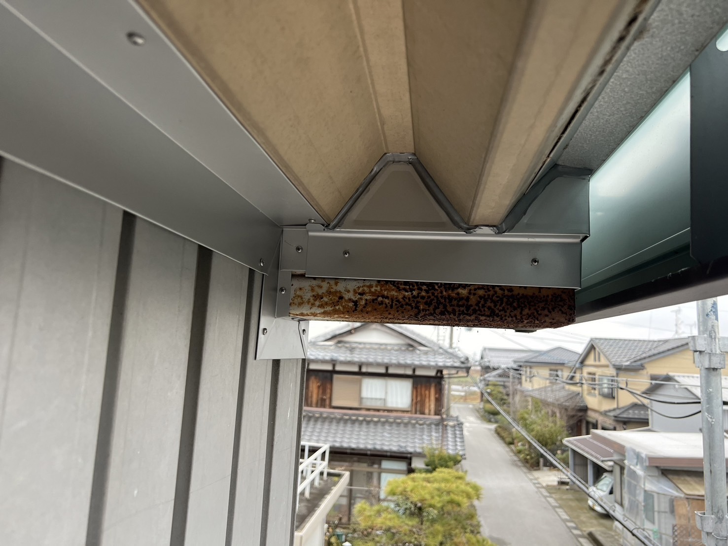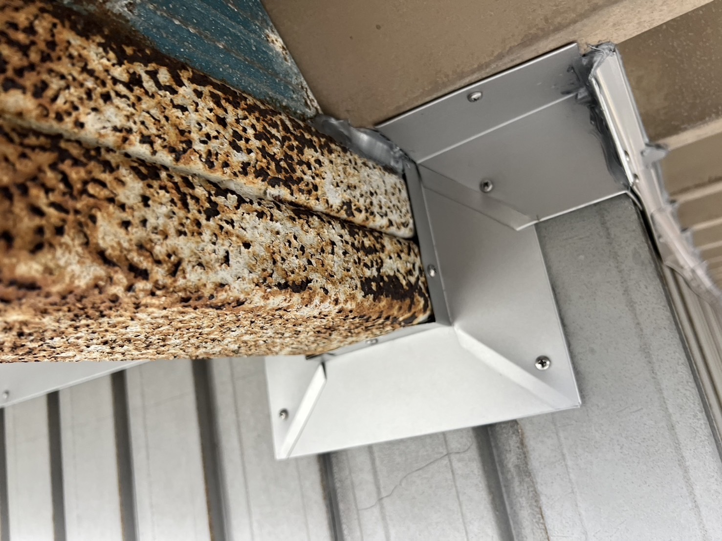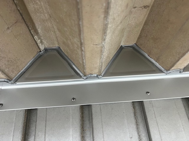 板金工事完了です。隙間を徹底的に埋めました。少しの隙間もコーキングで処理し鳥の侵入を防ぎます。明日は足場解体です。またアップします。