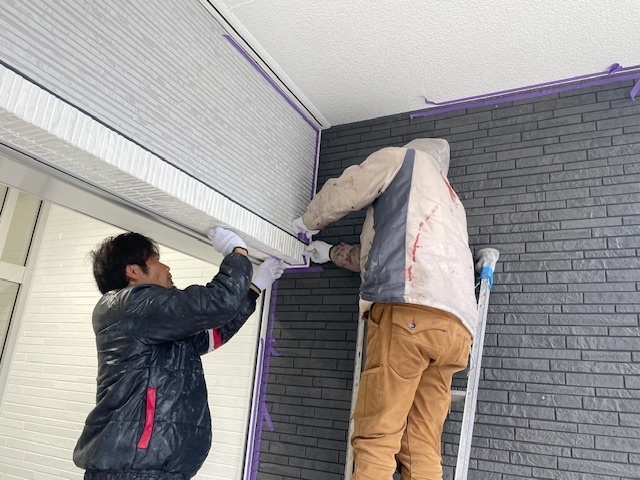 シーリング工事の様子です。6名で作業進めてくれたのでスムーズに進みました。古いコーキングの打ち抜きとマスキング作業です。またアップします。