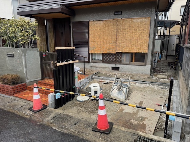 今日はエクステリアを仕込みました。ゲートの柱や角柱、手摺など設置しました。明日はいよいよ土間架設です。またアップします。