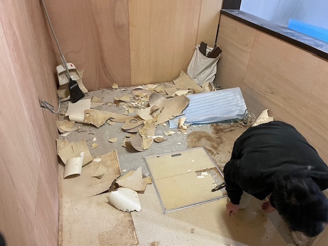 明日からキッチンの据付になるので床のクッションフロアとカップボードなどが入る壁の補強下地を進めました。またアップします。
