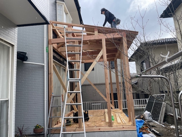 何とか天気も持ってくれて上棟終わりました。明日は透湿シートやサイディングなどの外壁工事です。ルーフィングも屋根職人が貼ってくれたので安心です。サッシも設置完了しました。またアップします。
