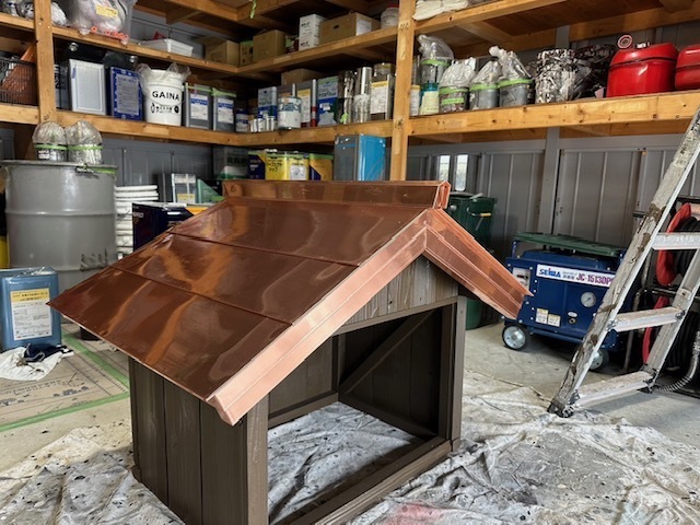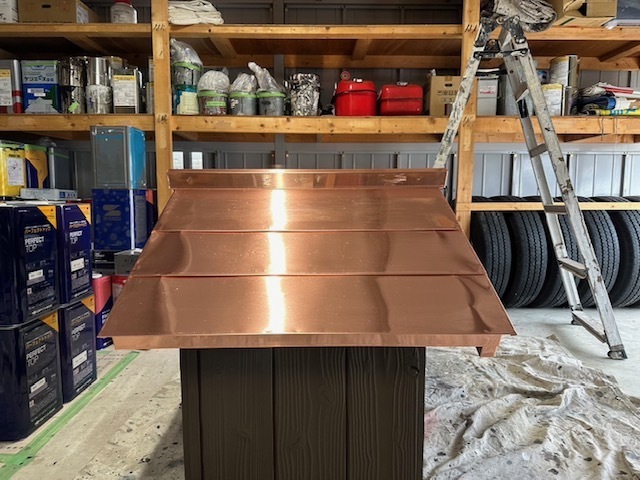 お地蔵様の祠の屋根も完了しました。銅でピカピカです^^自社施工になります。銅の酸化を防ぐのに仕上げにクリアー塗装を施しました。また天気の良い日に設置します。