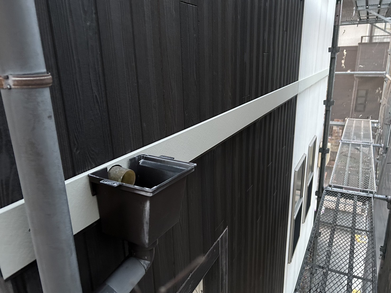 サイディングを中間水切りで少しカットしてモールを化粧で付けていきます。明日も引き続き作業します。それが終わるとコーキング工事です。またアップします。